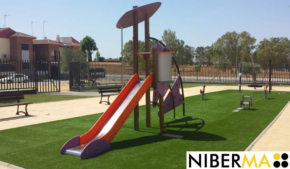 Por otra parte, las superficies de arena son muy difíciles de limpiar, con lo cual, la típica y tradicional sopladora utilizada por el personal de limpieza no es apta para limpiar estos residuos. Y bueno… ¿qué decir de los excrementos de los animales que a menudo ensucian estos lugares por culpa de la dejadez y poca ética de sus dueños? Debido a ello, el riesgo de transmisión y contagio de enfermedades es posible ya que los niños tienden a menudo a llevarse a la boca lo que cogen del suelo. Junto con la seguridad e higiene, cabe destacar uno de los motivos más importantes por el cual elegir este material frente a otro cualquier es el idóneo, y éste es que ayuda a preservar el medio ambiente y la sostenibilidad de los recursos naturales. Pues, las losetas y piezas de caucho son productos ecológicos, en los que casi el 90 % de sus componentes provienen de neumáticos ya gastados y posteriormente triturados. Por todas estas razones, optar por losetas de caucho para los parques infantiles exteriores es una excelente alternativa ¡por no decir la mejor de todas ellas! Confiar en la empresa online Niberma para llevar a cabo estas reformas, como lo han hecho ya en la capital y otras muchas ciudades españoles, es otra de las mejores opciones. Por fin, sepan que esta firma vende, construye e instala también pistas de pádel, fútbol, tenis y atletismo, tanto para constructoras y administraciones públicas como para particulares y que cuenta con los certificados de calidad necesarios.